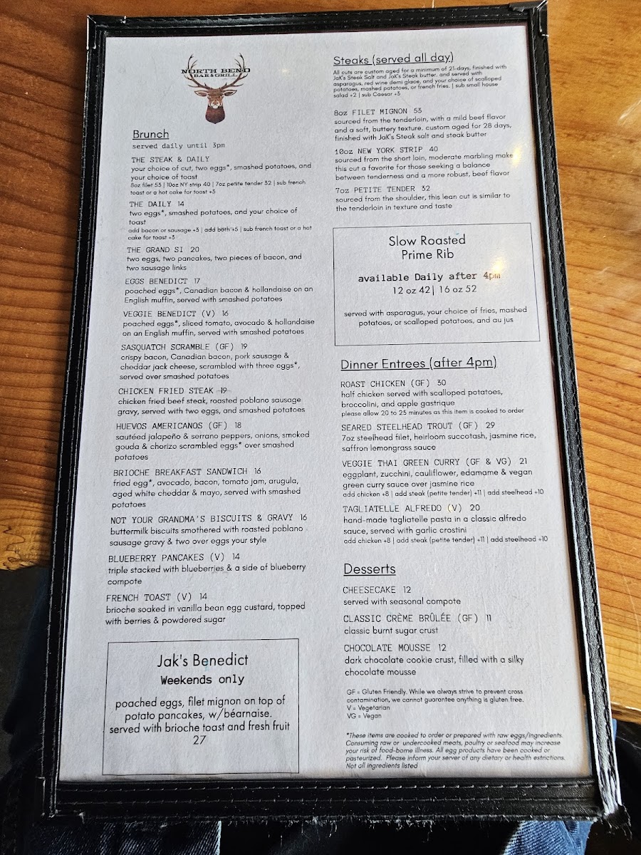 12oz Home Roasted Prime Rib served with Sautéed Broccolini, Mashed Potatoes, Au Jus & Horsey Sauce
