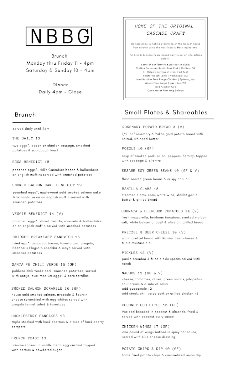 two eggs*, your choice of sausage or bacon and toast, served with smashed potatoes